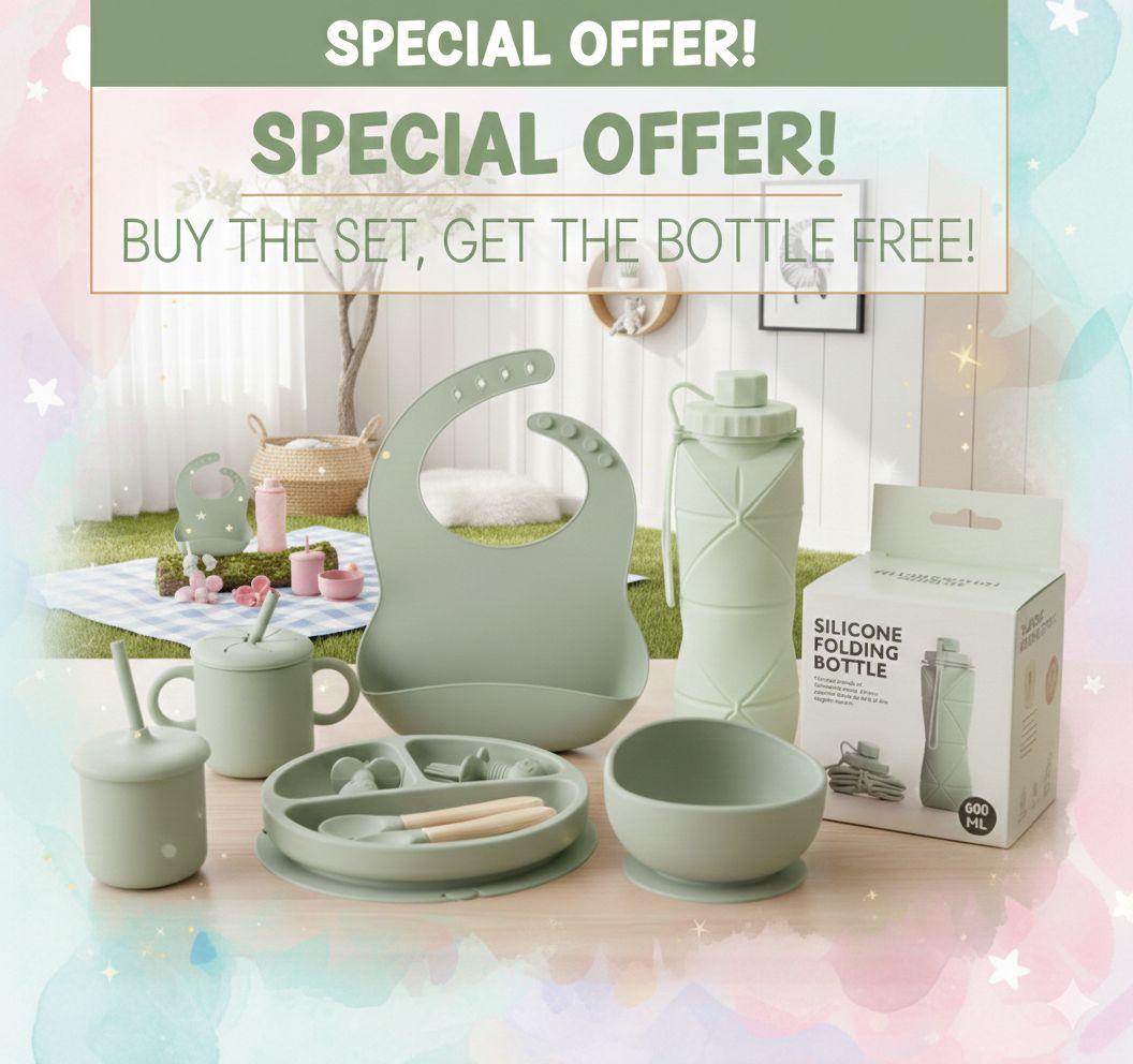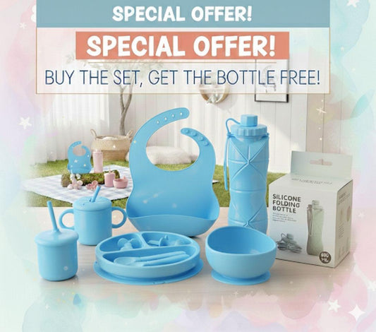 9 Pcs Silicone Meal Set with Free Silicone Water Bottle 600ml - 2 in 1
