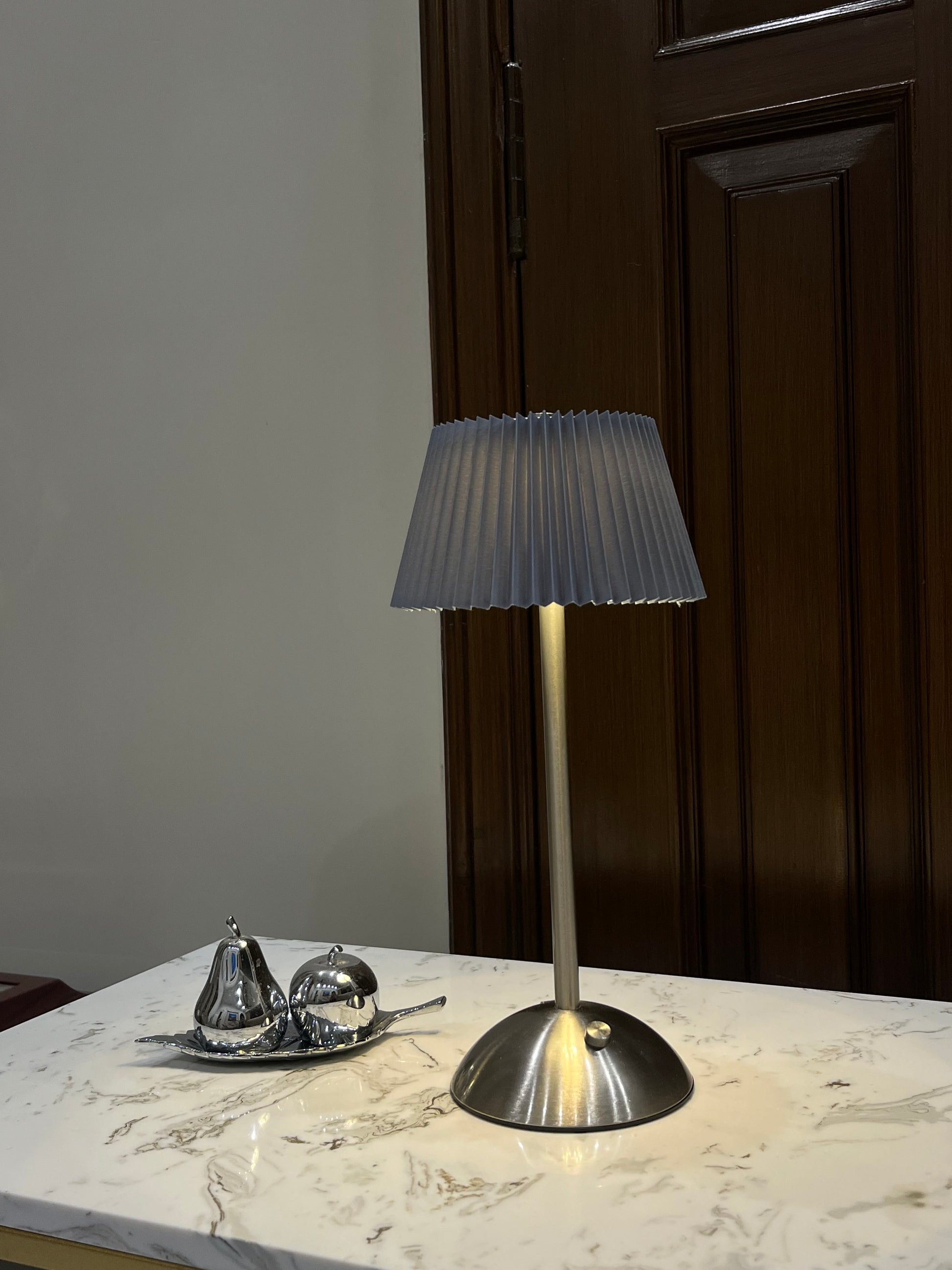 Grey Pleated Touch LED Table Lamp B/O ( 3 color Light )
